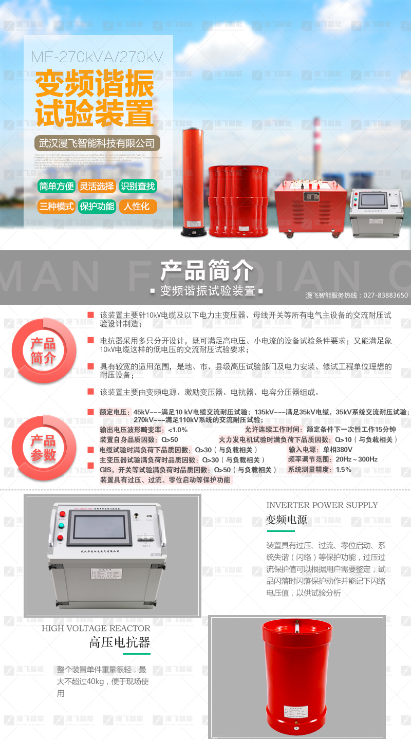 MF-270kVA/270kV變頻串聯(lián)諧振耐壓試驗(yàn)裝置技術(shù)參數(shù)
