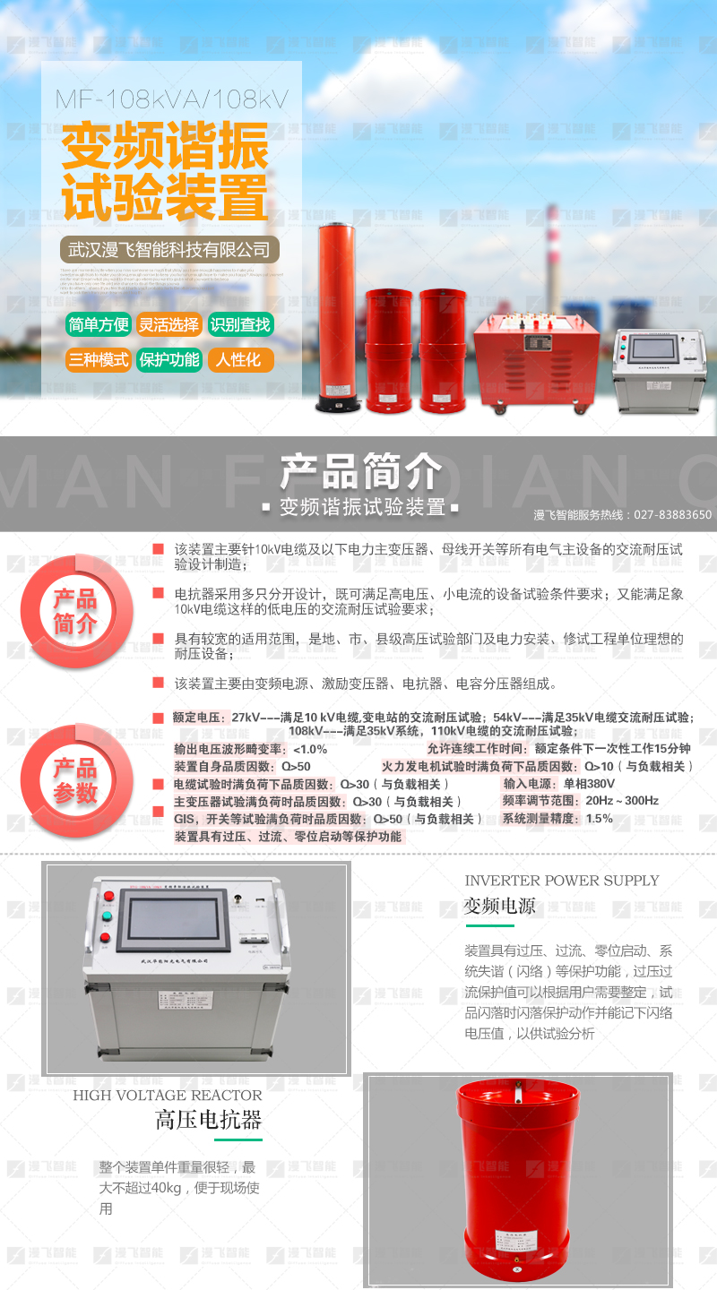 該套設備所有組成部分包括:變頻電源、激勵變壓器、澆注式高壓電抗器和高精度電容分壓器。